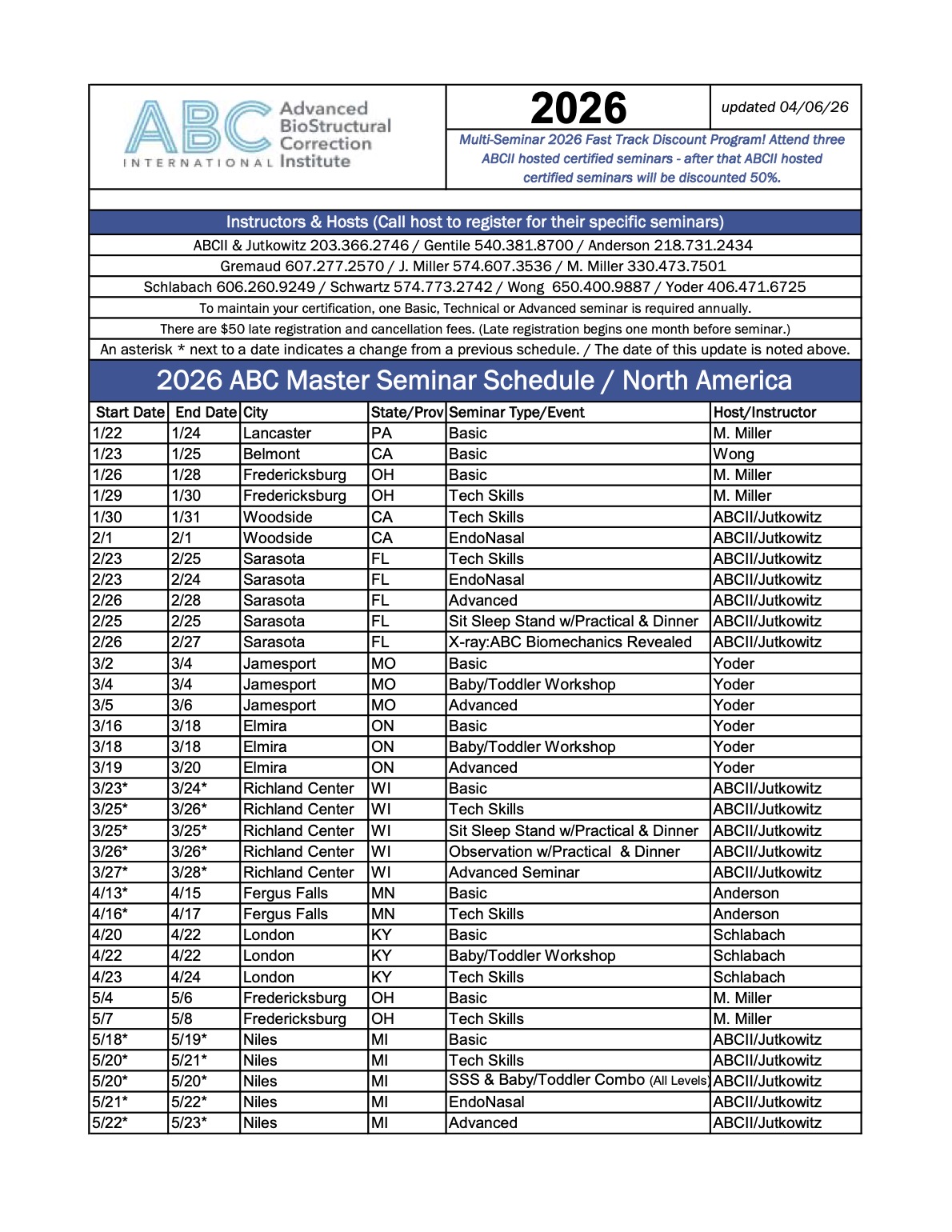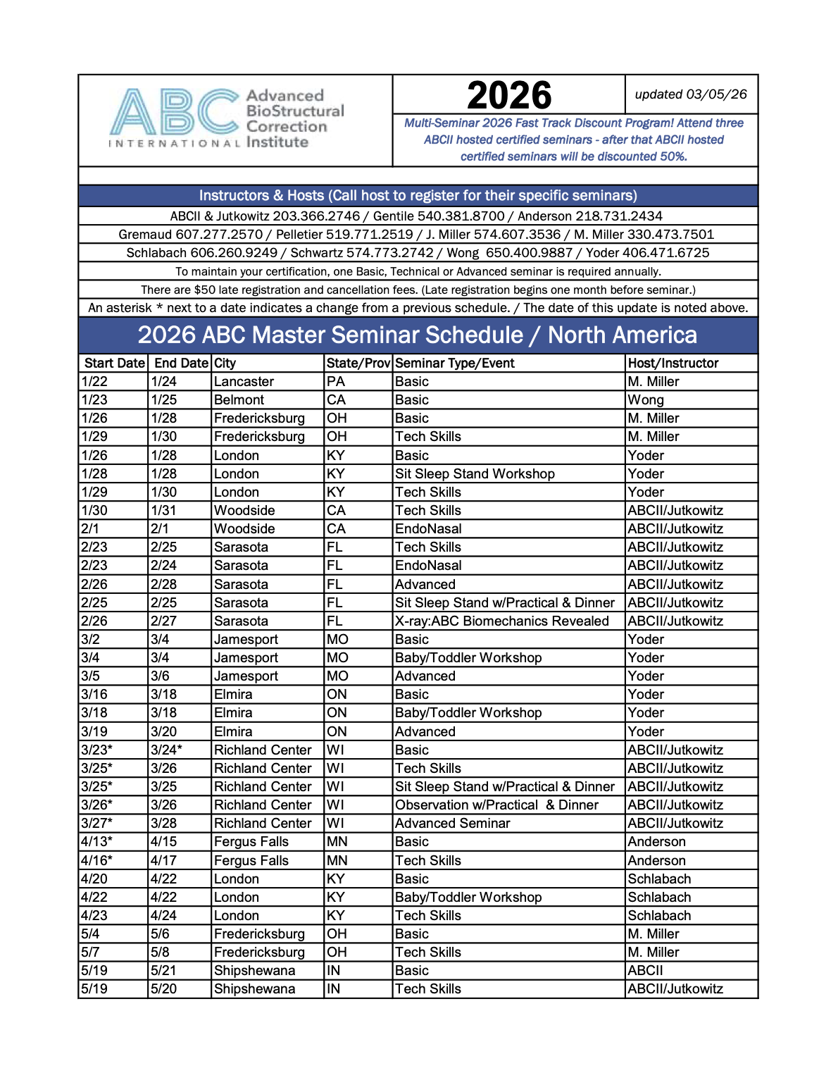 If you are unable to attend a seminar for which you are registered, the seminar cost less $50 (per registered seminar) will be credited on your account for you to apply to a future seminar. ABCII™ reserves the right to change instructors and locations if necessary.